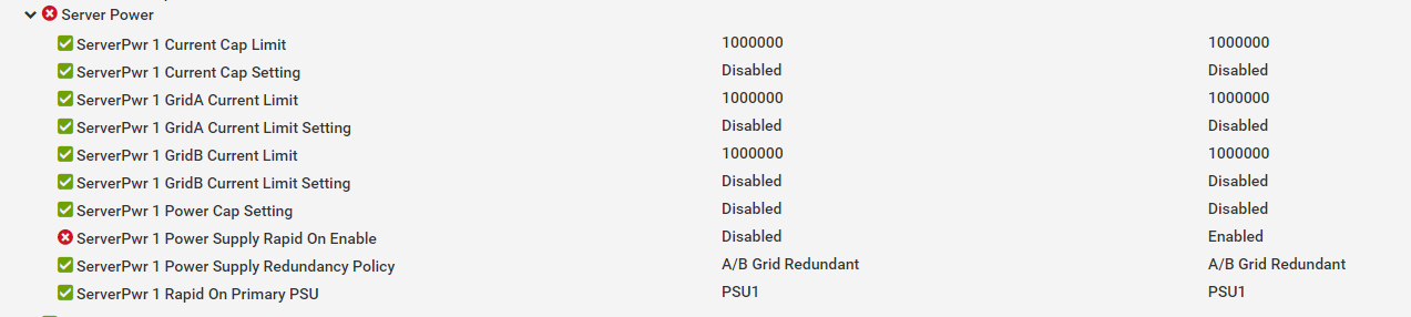 Does anyone know how to run a report that shows the power configuration of servers that includes whether or not 'Hot Spare' is enabled? I was able to run a report showing the psu redundancy state, but nothing with 'hot spare' per se. The report with redundancy state has an adjacent column showing Power Supply Requested State - which I can't figure out what the output refers to (it gives only 0 or 12 in our case). Any help would be appreciated.