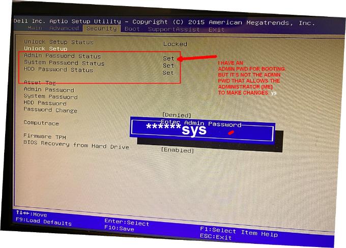 I have the SYSTEM and the HDD PWDs to get me into the BIOS utility.