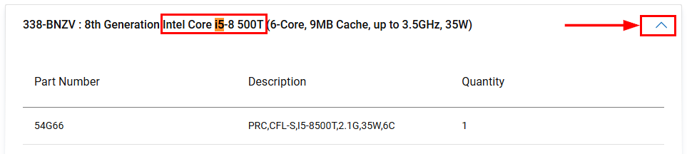Of course, that leaves you right where you are now. But look further! I just searched for "i5" on the page to find it faster. Make sure you're clicking on the drop down arrow if you want to see more details. This is an example of what I find for my own search. Your own results will be different. In my case, it's an I5-8500T. Yeah, they put a space in there, but we are smart enough to translate it. 😉