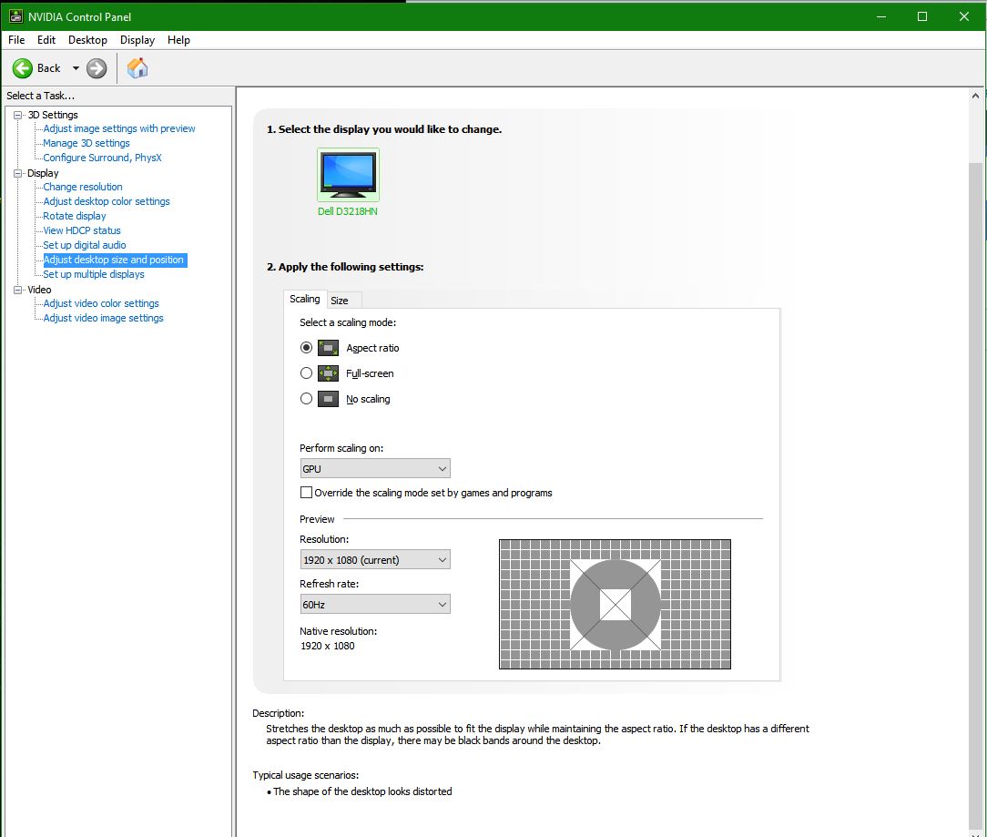 I do not see a reference to NVIDIA scaling. I chose, "Perform scaling on GPU". Then Aspect ratio.