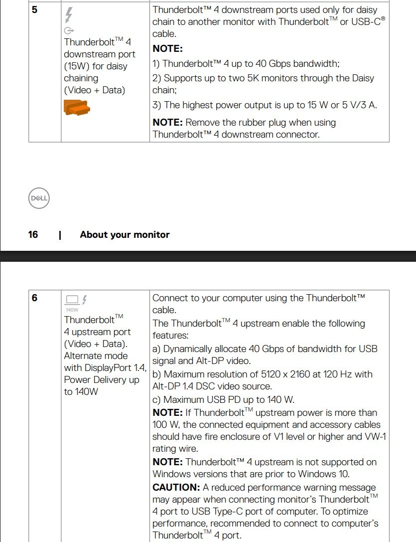 We offer the single 140W or 90W Thunderbolt 4/DP 1.4 alt mode upstream Video + Data port and the second 15W Thunderbolt 4 downstream Video + Data port for daisy chaining the second Thunderbolt computer.