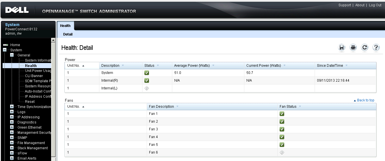 I have a great switch Dell PowerConnect 8132 with 2 power supply. But second (or left) not activated.