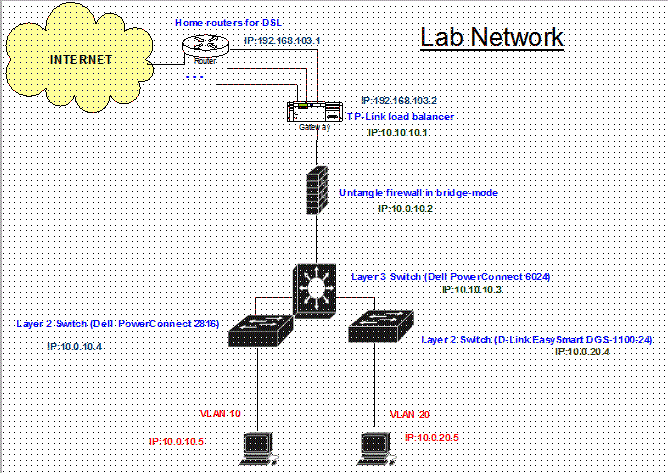 The first one is connected to a Dell PowerConnect 2816 Switch and the other one to another manufacturer Switch as shown in the picture (both are Layer 2 Switches and are configured more or less in the same manner). On the upper level, each switch is connected to a Dell PowerConnect 6024 switch (which as you probably know is a Layer 3 Switch).