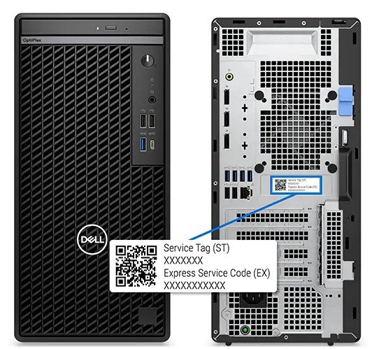 A Dell Optiplex should have a label on the rear with a bar code. That label should show the private Service Tag and private Express Service Code.