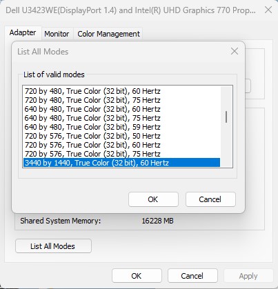Optiplex 7010 SFF, U3423WE cannot choose 10 bit color depth
