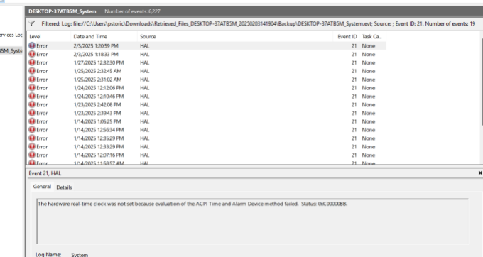 Anyway, good luck and I’ll reply here if it acts up again. FYI I Still see HAL event ID21