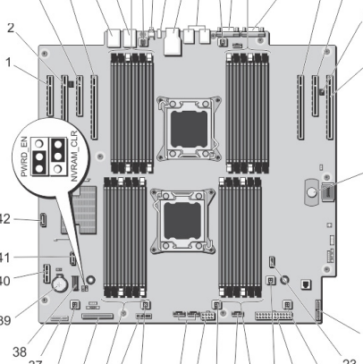 I would start with powering down the server, once down then remove the power cables, then hold the power button for 20 seconds to drain the flea power. Once you have that complete then open the cover and locate the NVRAM_CLR jumper, as shown below.