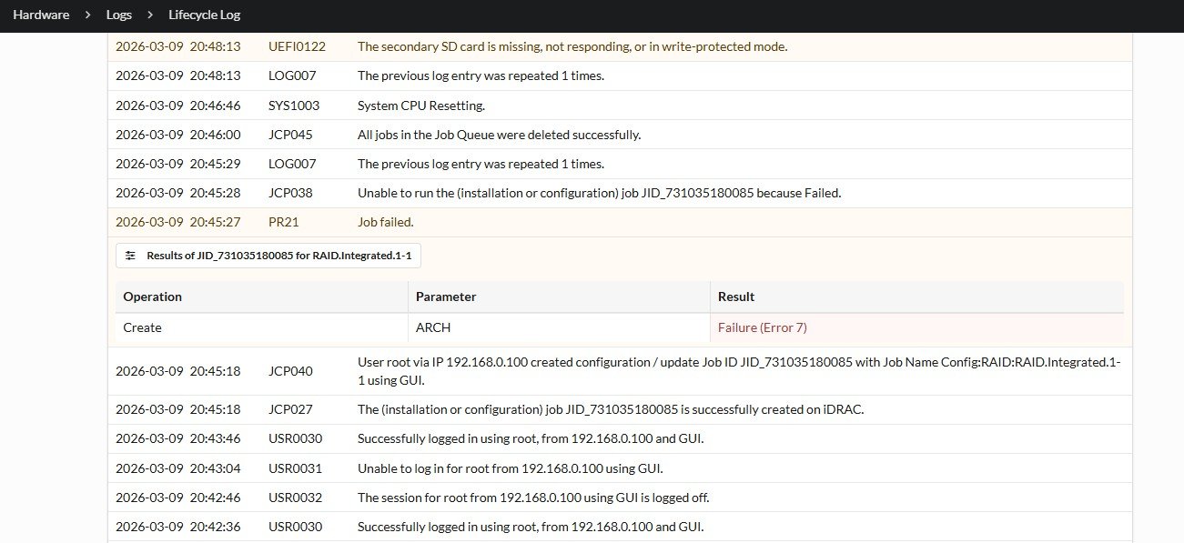 I also attempted to erase the existing data from the old disks. The erase process is still in progress, and once it is completed, we will try again to create the virtual disk.
