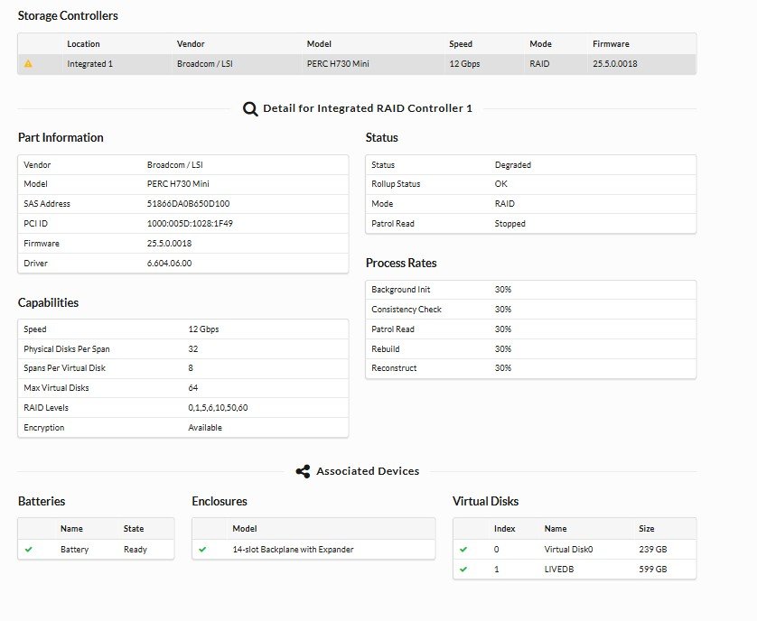 Unfortunately, the operating system virtual disk is on the same RAID controller, so we cannot clear the entire PERC H730 configuration.