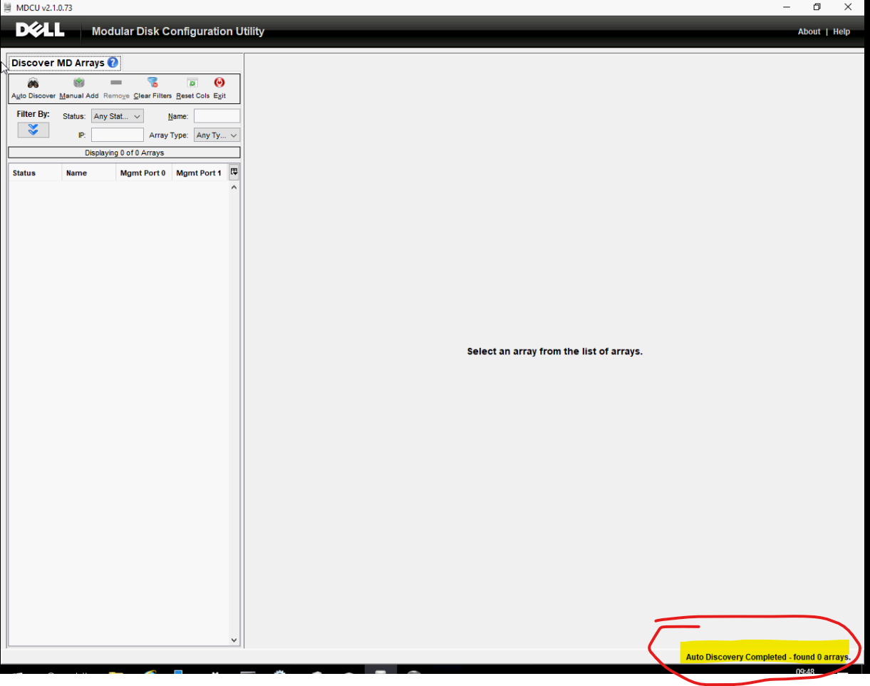 Just click the "manual Add" button and enter both controller IPs. I never used the discovery option because the MDSM never runs on the Host where the MD3 is connected.