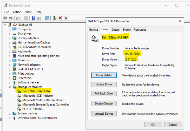 As far as i can tell it is connected via a Dell 12Gpbs SAS HBA and is connected to the server and working.