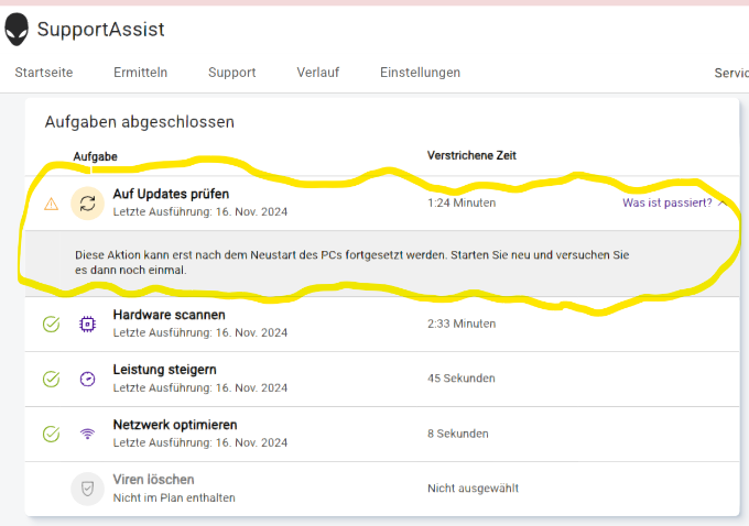 I uninstalled restarted then reinstalled support assist on the AuroraR8 and there wasn't any improvement.