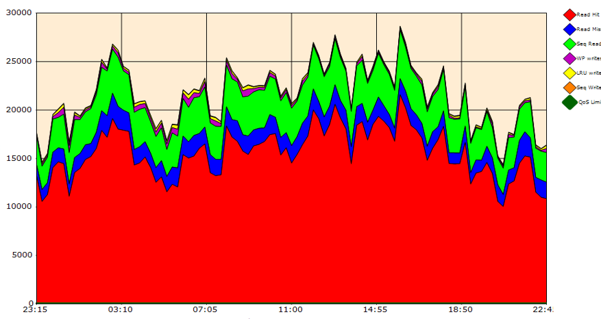 The different colors are additive, not overlapping. So in this case RH is about 80% of the I/O. With the other types taking ~20% total.