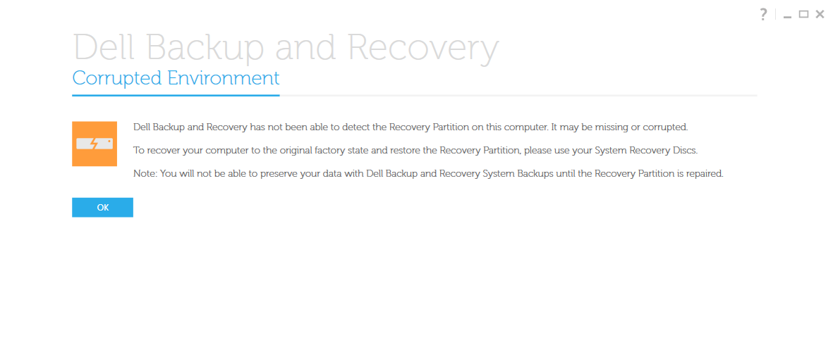 The above error indicates the Dell backup and recovery application or the partition itself is corrupted. Request you to use the below link to reinstall Dell backup and recovery and try doing it again: