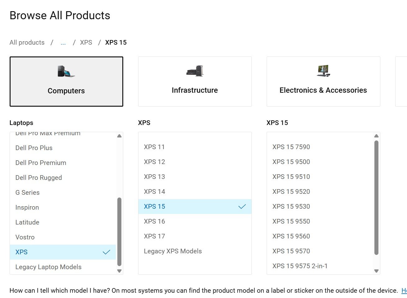 * Before our users can assist in finding a compatible battery, they need to know which specific XPS 15 model?