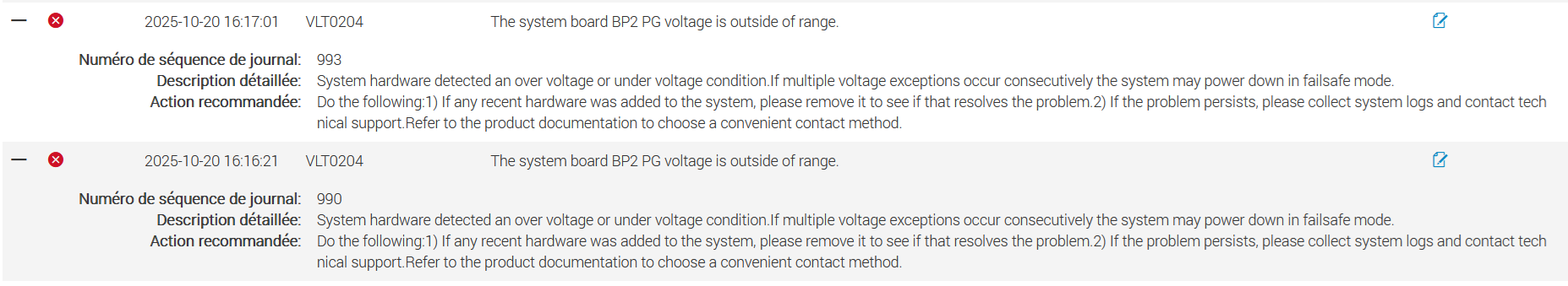 @DELL-Marco B​ Bonjour les mises à jours ont été faites. La carte graphique n'a pas de problème. ce sont les FAN qui tombent en panne et envoie des erreurs. 5 Fans sont tombé en panne sur 6 au total