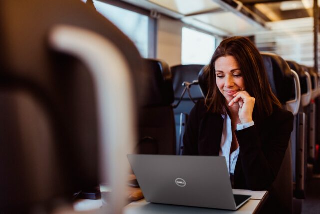 Dank ihres EWS-gesicherten, 5G-fähigen Dell Pro Laptops nutzt Amalia Microsoft Copilot zur Auswertung von Investitionsoptionen und erstellt ein qualifiziertes Kundenbriefing in Echtzeit. Via Microsoft Teams stimmt sie sich parallel mit ihrem Team ab – direkt aus dem Zug.
