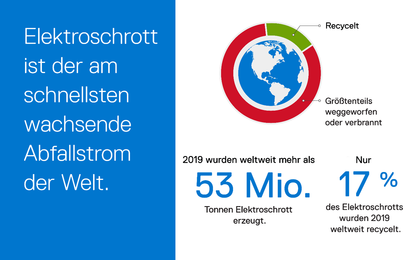 Dell Technologies bietet seit mehr als 25 Jahren sichere Services für die Wiederverwertung gebrauchter Geräte für Unternehmen weltweit an. Seit 2008 haben wir mehr als 2,5 Milliarden Pfund gebrauchte Elektronik wiederverwertet – und das ist uns noch nicht genug. Wir verfügen über den Umfang, die Größenordnung und das Compliancefachwissen, um den gesamten Prozess der Bestandsentsorgung von Anfang bis Ende zu managen und Sie so vor Problemen aufgrund von Geräten unterschiedlicher Anbieter zu schützen. Wir nehmen den Schutz Ihrer Daten, Ihres Markenimages und der Umwelt sehr ernst und erwarten dies auch von unseren Partnerunternehmen.