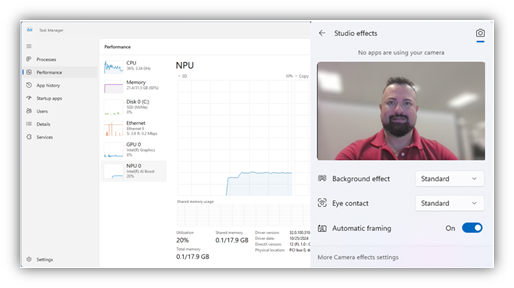 In addition, AI PCs equipped with NPUs represent a notable advancement in computational power and functionality. These purpose-built processors are engineered to efficiently execute sophisticated AI algorithms and tasks, positioning them as valuable assets for enhancing workplace collaboration. They enable tasks like: