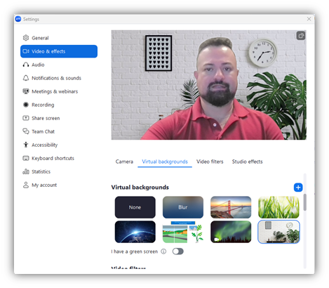 - Background Blur: Blurs your background to keep focus on you, so your appearance stays polished, even if you don’t have a dedicated office space.