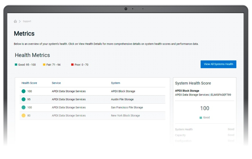 • Optimize your Dell APEX services with capacity tracking and system health monitoring, all in one place.