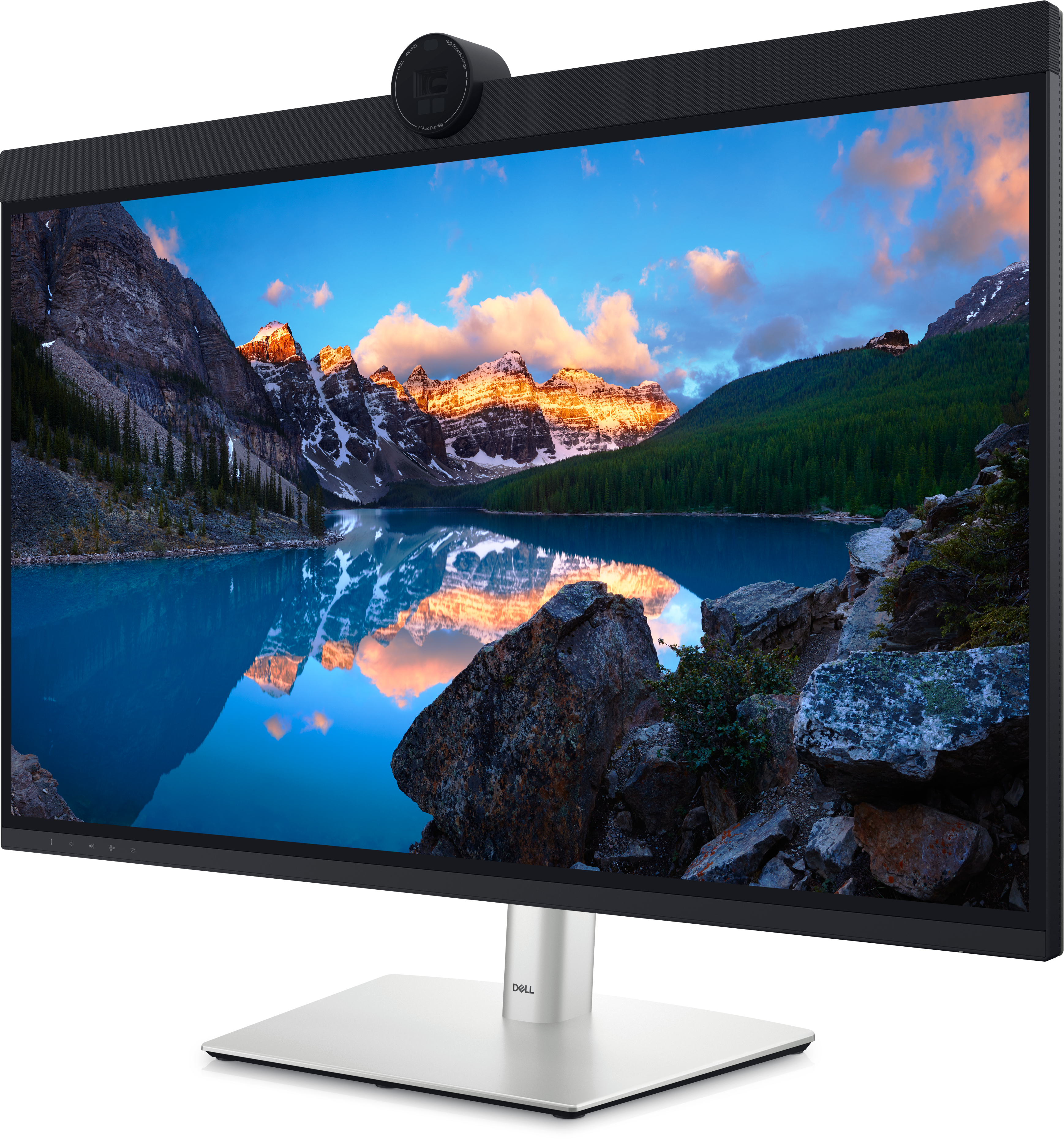 A 27-inch QHD IPS display with a 2K camera, dual microphones, and built-in speakers for seamless collaboration.