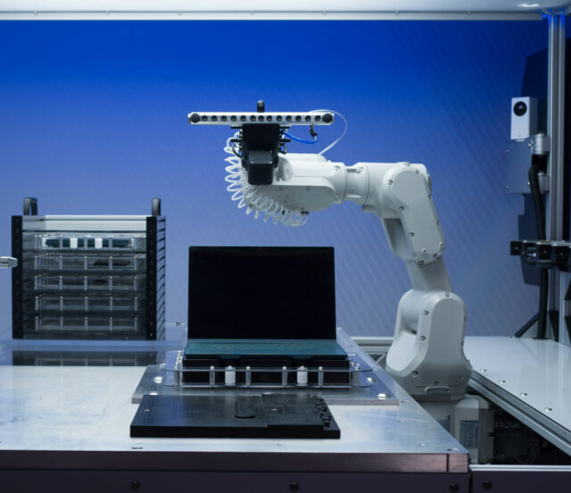 Aujourd’hui, démonter un PC peut demander plus d’une heure de travail à un technicien ou à un centre de recyclage, le temps de retirer toutes les vis et de séparer les composants collés ou soudés. Avec les dernières évolutions apportées au concept Luna, le démontage prendrait à peine plus d’une minute. Nos équipes ont ensuite participé au développement d’une micro-factory qui automatise la maintenance et le démontage grâce à des robots (voir la vidéo ci-dessous). Le but ultime de Concept Luna Evolution serait en effet d’avoir des robots capables de gérer intégralement la maintenance de l’appareil afin de gagner en efficacité de réutilisation.