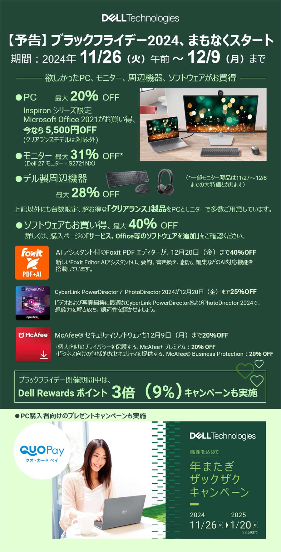 デル・テクノロジーズ、「【予告】 ブラックフライデー2024、まもなくスタート」