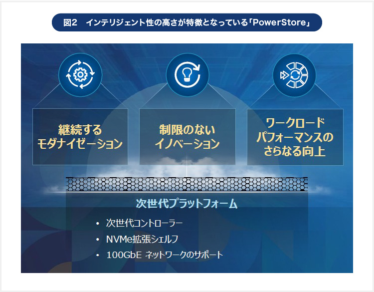 ジャストラブ氏まず「PowerStore」から見ていきましょう。これはデル・テクノロジーズが2年前に市場投入した新しいストレージ製品で、インテリジェント性が大きな特徴になっています。ストレージとして各種インテリジェンス機能を提供するのみならず、アプリケーションが動く仮想マシンをそのまま載せられるという機能も備えています。