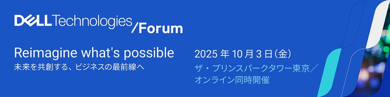 デル・テクノロジーズ株式会社(本社:東京都千代田区、代表取締役社長:大塚 俊彦、以下、デル・テクノロジーズ、URL:https://www.dell.com/ja-jp)は、「Dell Technologies Forum 2025」を2025年10月3日(金)にザ・プリンス パークタワー東京 / オンラインにて同時開催することを発表しました。