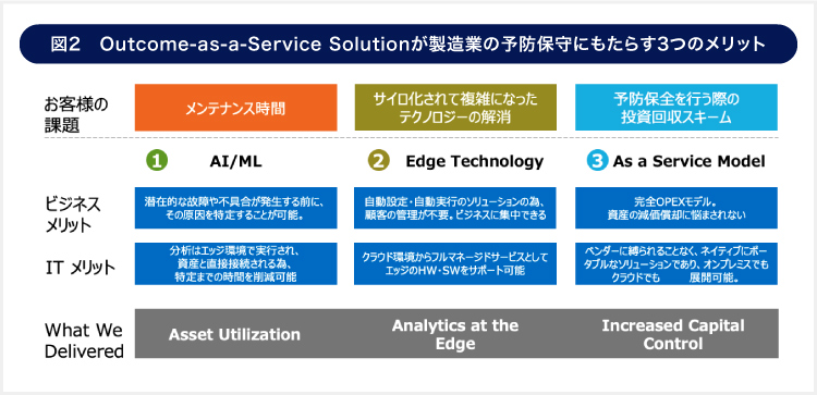 まず1つ目が「メンテナンス時間の短縮」だ。AIや機械学習による分析をエッジ環境で実行し、その結果をその場で活用することで、問題特定までの時間を大幅に削減できる。