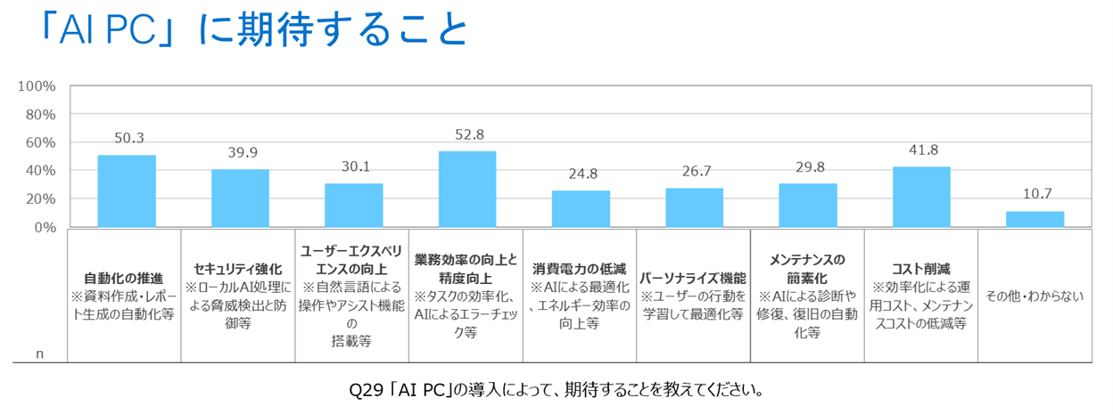 ―「AI PC」への関心が上昇し、業務効率化や自動化推進への期待が高まる一方、責任の所在や有効活用への懸念が浮き彫りに―