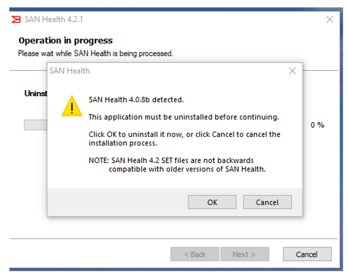 - When a previous version of SAN Health installed, it must be uninstalled before continuing with this install