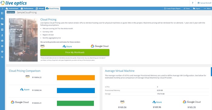 Live Optics helps you solve both problems. First, Live Optics will automate the inventorying of your VMs with just a few clicks. Second, Live Optics has now introduced automatic cloud pricing and comparison for every VM inventoried in your project.