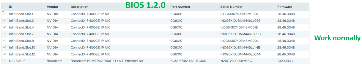BIOS-Version 1.0.2 unterstützt die U.2-Gehäusekonfiguration nicht. Die U.2-Gehäuse-Switch-Firmware war zum Zeitpunkt der BIOS-Veröffentlichung nicht bereit, was zu einer fehlenden FQDD-Zuordnung (Fully Qualified Device Descriptor) führte.