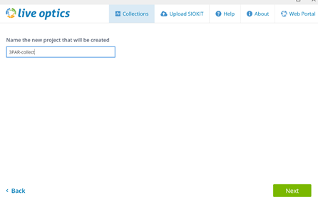 - There is an option to upload later. This saves the configuration and performance data to an encrypted file, named [hostname]_3PAR.siokit. The file is written to the same folder that the collector was run. Use this option when the host running the collector does not have Internet. Instructions for uploading the SIOKIT can be found at the end of these instructions
