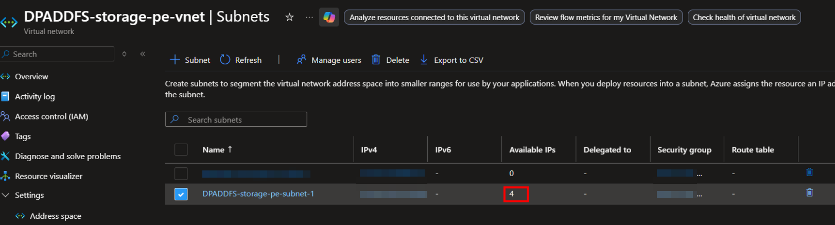 NOTE: The Virtual Network must belong to the same resource group as the target. The subnet must have available IPs.