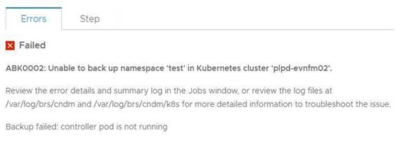 Backup Kubernetes non riuscito con errore "controller pod is not running".
