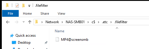 - If a certain file type is to be blocked on all the shares on the NAS server, create a file like "tmp". This blocks this file extension on all the shares on the given NAS server, in this example, all .tmp files.