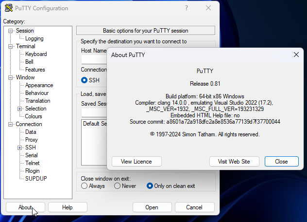 如果在尝试使用 Putty 连接到 DD 时遇到错误,则可能是 putty 程序过时太久,需要更新。
