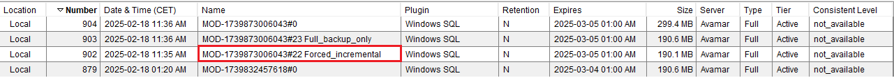 In comparison with on demand backup, we can see the label name with force incremental: