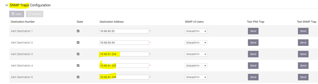Não há nenhuma alteração na configuração do iDRAC para o servidor do Console de recuperação de emergência (ERCS).