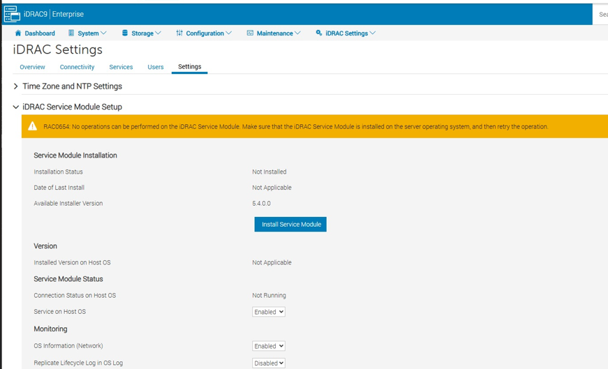 Summary: Fra og med iDRAC-version 7.20.60.50 omfatter den integrerede Dell Remote Access Controller (iDRAC) GUI ikke længere knappen iSM-installation på iSM-konfigurationssiden. Denne ændring afspejler udfasningen af den funktion, der tidligere tillod installation af iDRAC Service Module (iSM) via iDRAC. ...