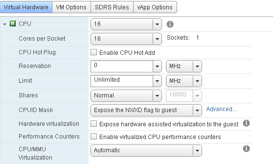 참고: "게스트에게 하드웨어 지원 가상화 노출" 설정을 더 이상 사용하도록 설정하면 안 됩니다.