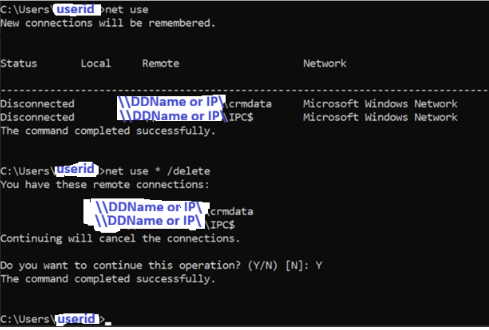 net use * /delete - Vahvista kirjoittamalla Y pyydettäessä.