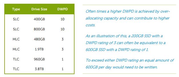 Il presente articolo tratta di prezzo e prestazioni, ma si incentra sulla durata, in particolare su quel che riguarda il tema del valore DWPD (scritture su unità al giorno), che è diventato uno standard per indicare le aspettative di usura o durata delle unità SSD.