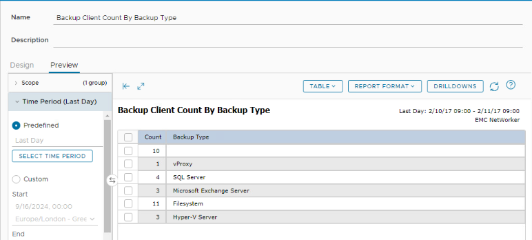Resumo: Este artigo detalha como criar um relatório do Data Protection Advisor (DPA) que resume clients do NetWorker com base no tipo de backup.