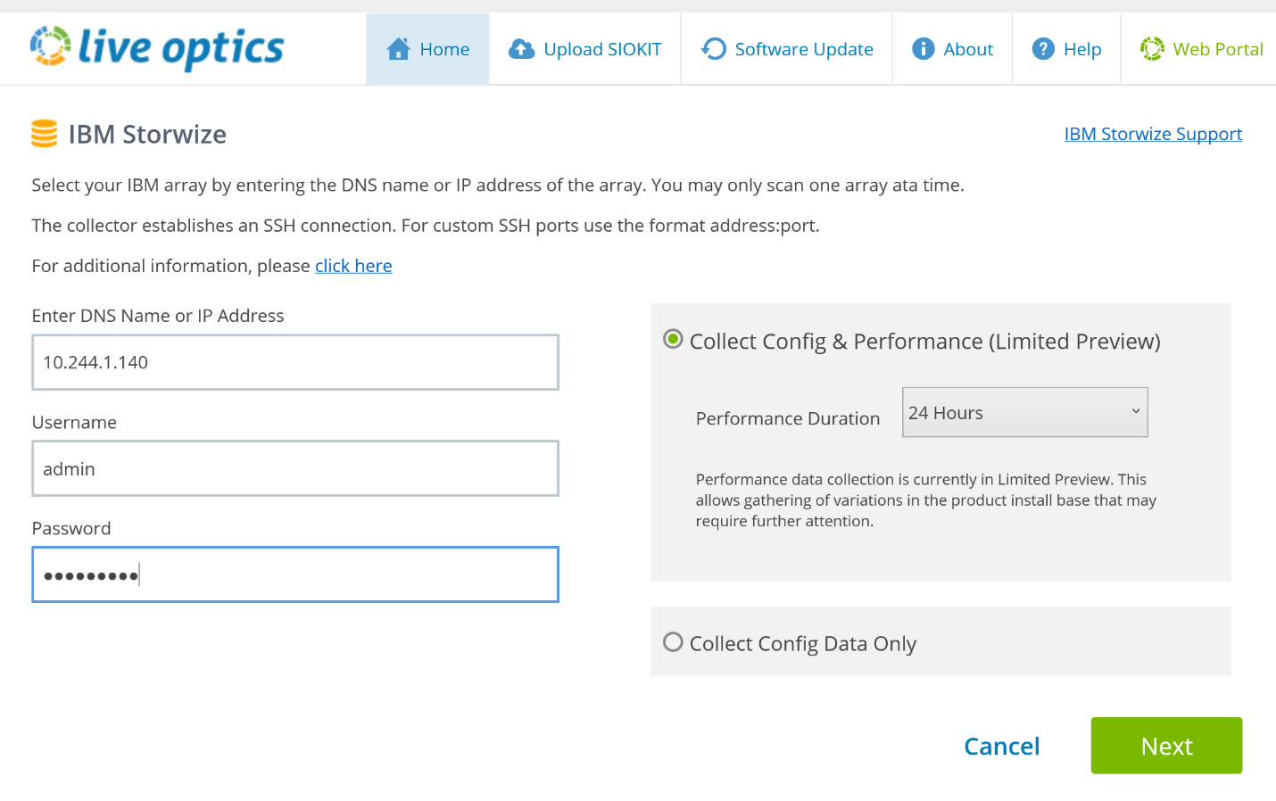 Live Optics | IBM Storwize | Complete a Storwize Storage Array Profile