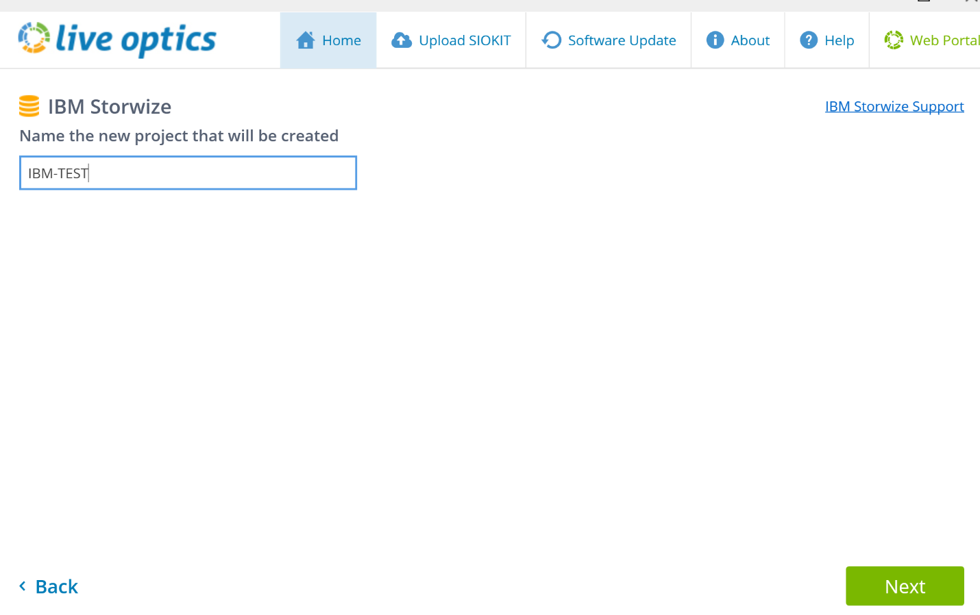 - Enter the name of the project that will be created in the Live Optics portal
