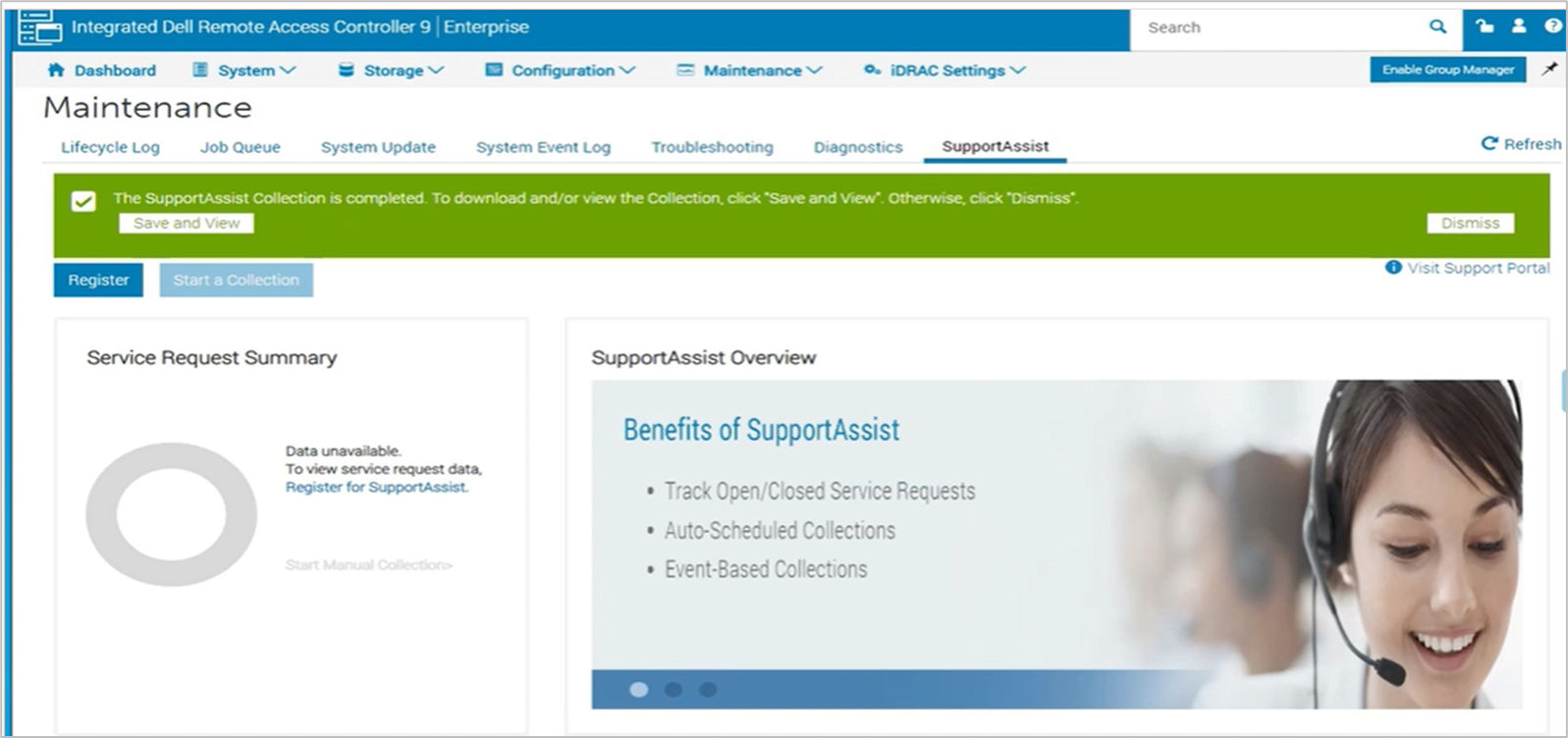 図1:iDRAC9 SupportAssistのコレクション メニュー